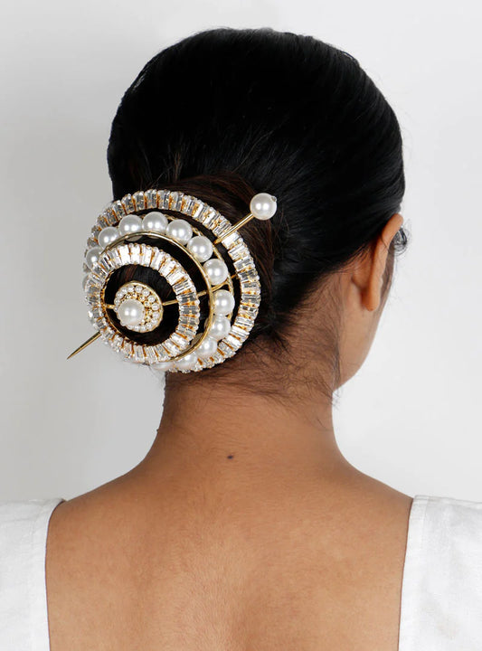 Traditional Hair Bun Pearl Brooch