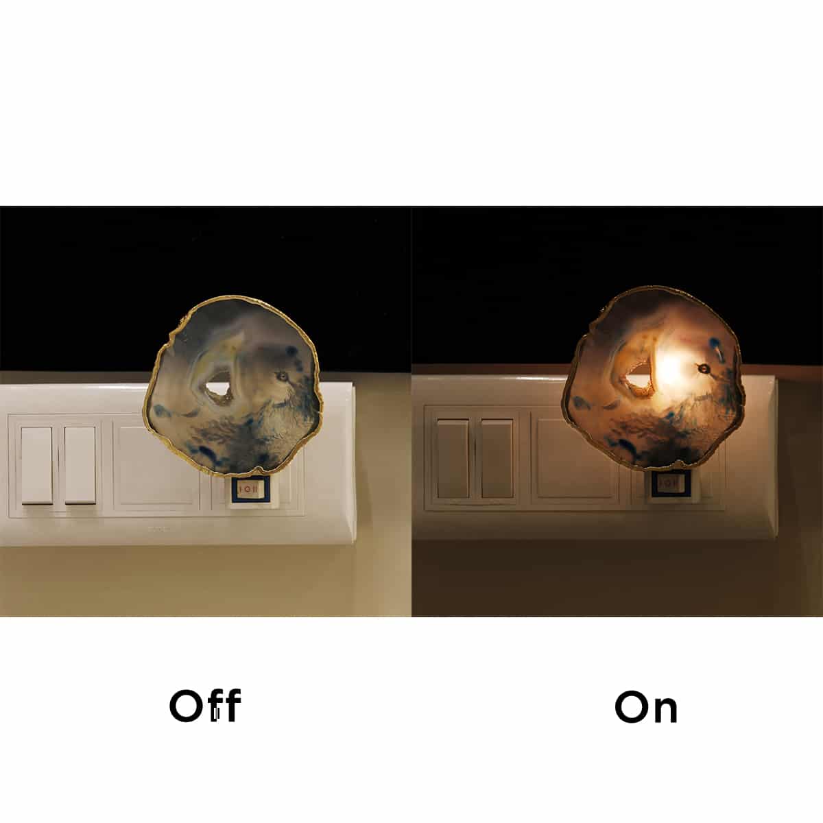Introducing the Beautiful Agate Slice Wall Lamp by Jai Ho India, available in 4 captivating colors. These unique lamps seamlessly blend nature’s exquisite artistry with gentle, warm light to grace your space with elegance and charm.