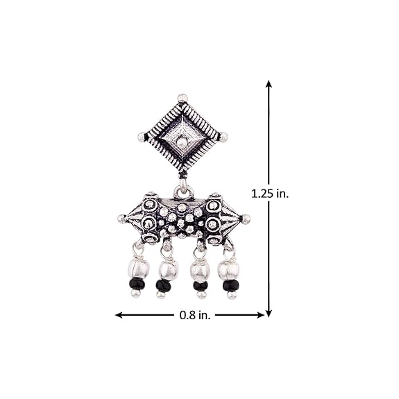 Crafted with care, these earrings are not just about beauty but also comfort. Made with skin-friendly materials, they ensure a gentle touch against your skin, allowing you to wear them with ease throughout the day. The oxidized finish adds a vintage charm, making these earrings a timeless addition to your jewelry collection.