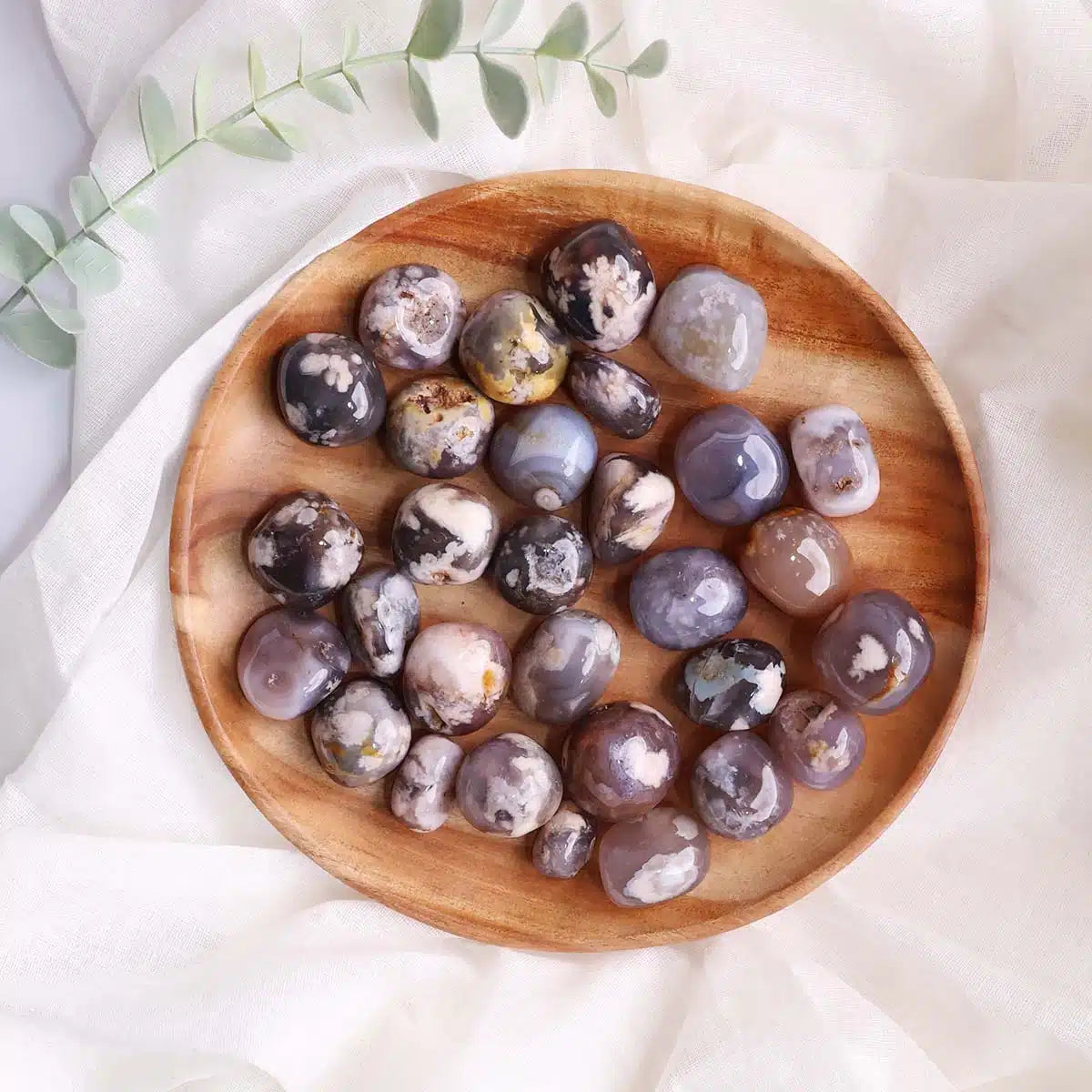 Explore the beauty and metaphysical benefits of Black Flower Agate available at Jai Ho India Store. This distinctive crystal features a dark background adorned with flower-like patterns in varying shades of white, light gray, or beige, each piece uniquely captivating.