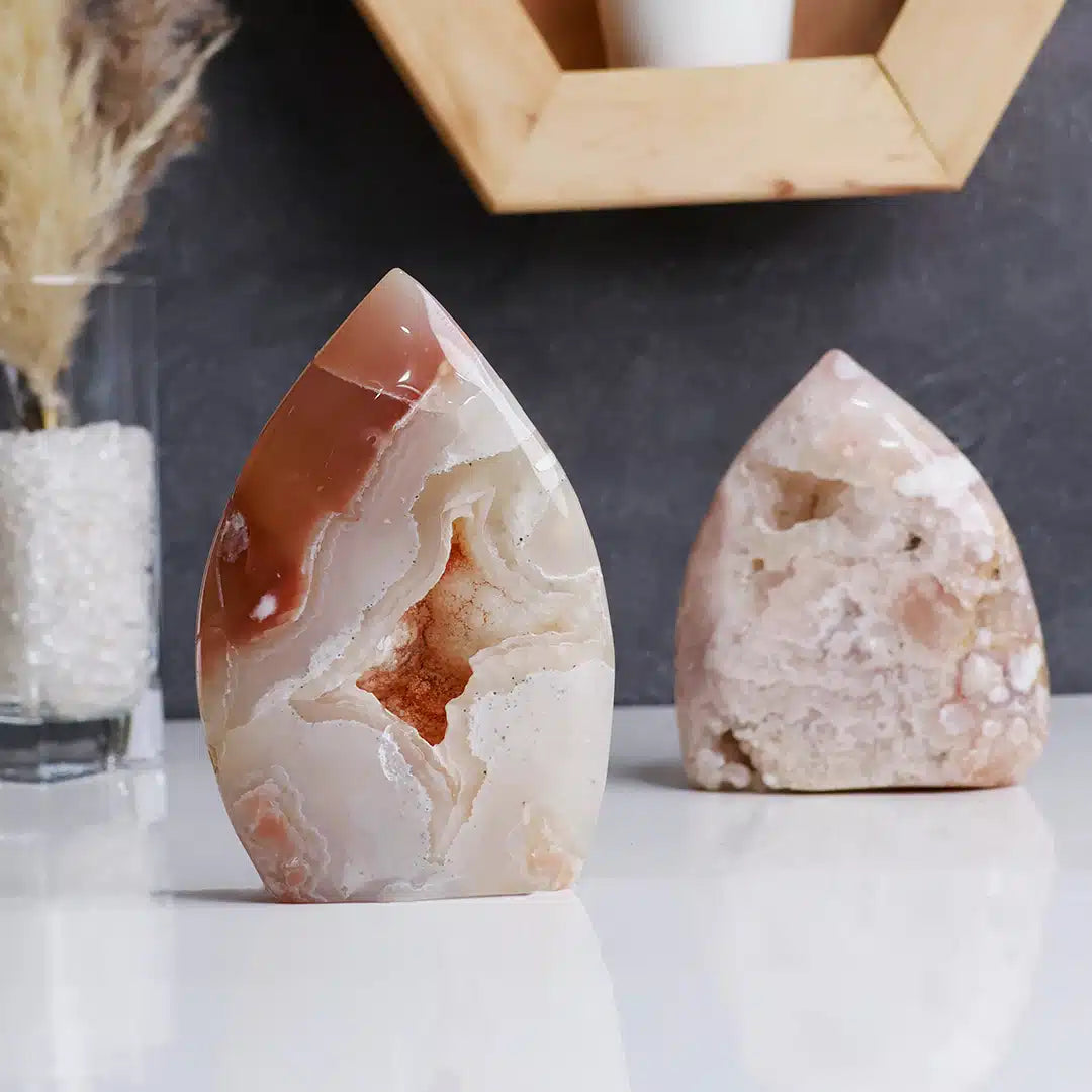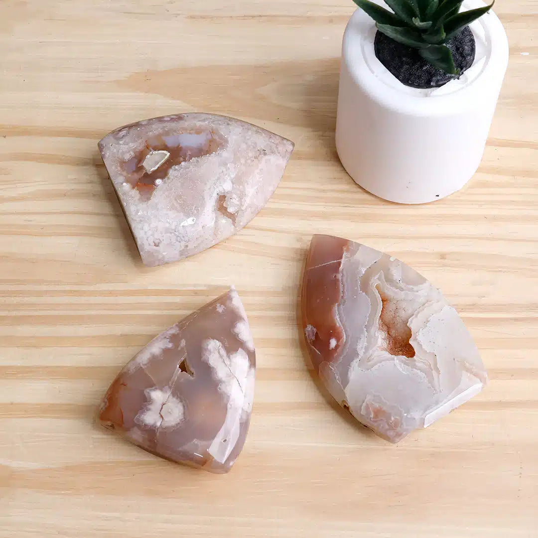 Aligned with the heart chakra, Flower Agate is esteemed for its role in emotional healing, promoting self-love, and fostering compassion. Each crystal is distinct in color, weight, and size, embodying the inherent variations found in this remarkable stone. Whether seeking balance, artistic inspiration, or the comforting energies it offers, Flower Agate is a valuable addition to any crystal collection, promising transformative benefits for spiritual seekers and collectors alike.