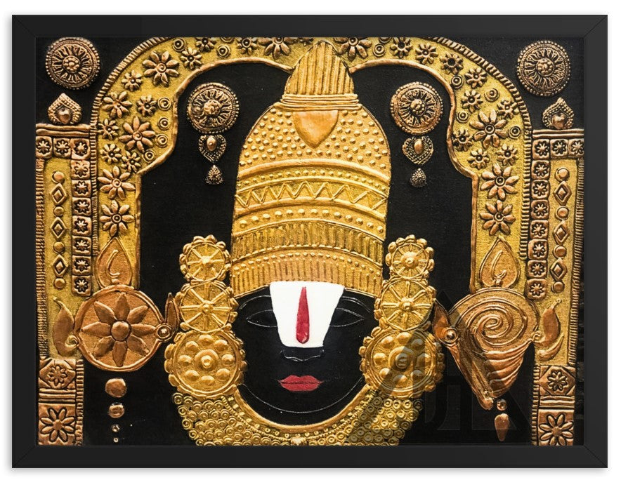 At the heart of the painting shines Lord Venkateshwara, depicted with intricate detail and adorned in vibrant hues that bring his divine presence to life. What sets this artwork apart is the remarkable use of a cone, which adds a mesmerizing 3D effect to the painting. Every stroke and curve is meticulously crafted, creating a visual masterpiece that captures the essence of devotion and spirituality.